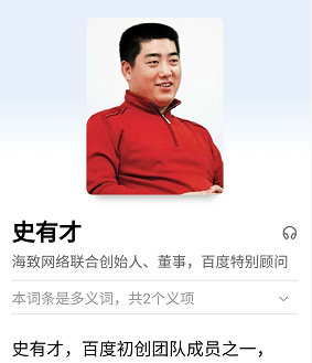 史有才,百度初创团队成员之一,2001年就加入了百度,曾担任销售总监、副总裁等职务,负责广告销售渠道的建设。2011年5月24日,时任百度副总裁的史有才离职。2019年5月17日,百度出现了自05年上市以来的首次亏损,单季度亏损3.27亿元。2019年6月,史有才回归百度,职位为特别顾问,负责搭建广告销售、渠道体系,是实际上的副总裁,接替了向海龙的任务。