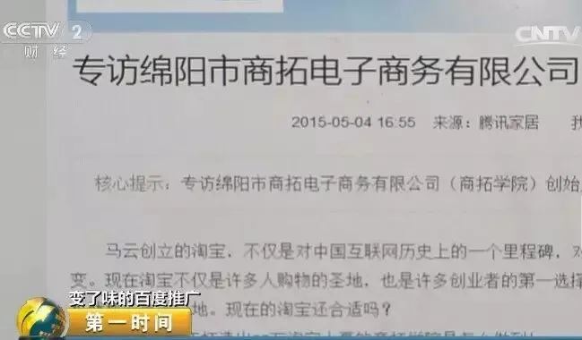 当罗女士在百度搜索中输入“如何开网店”后,一家名为“绵阳市商拓电子商务有限公司”出现在页面中非常靠前的位置,她就点了进去。