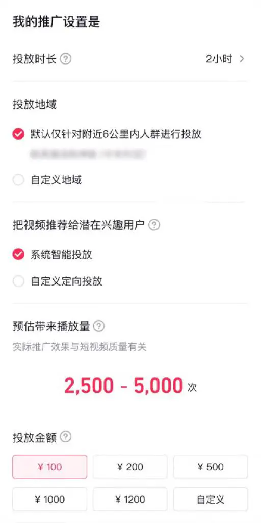 投放地域设置(可选附近6公里,或自定义圈选全国/省市/区县)