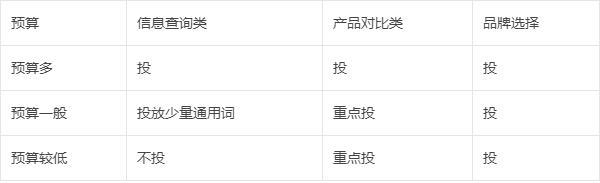 所以在了解了关键词的分类之后,我们可以根据自身的预算情况,做合理的关键词筛选策略: