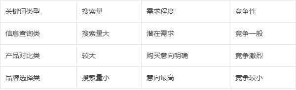 信息查询类关键词、产品对比关键词、品牌选择