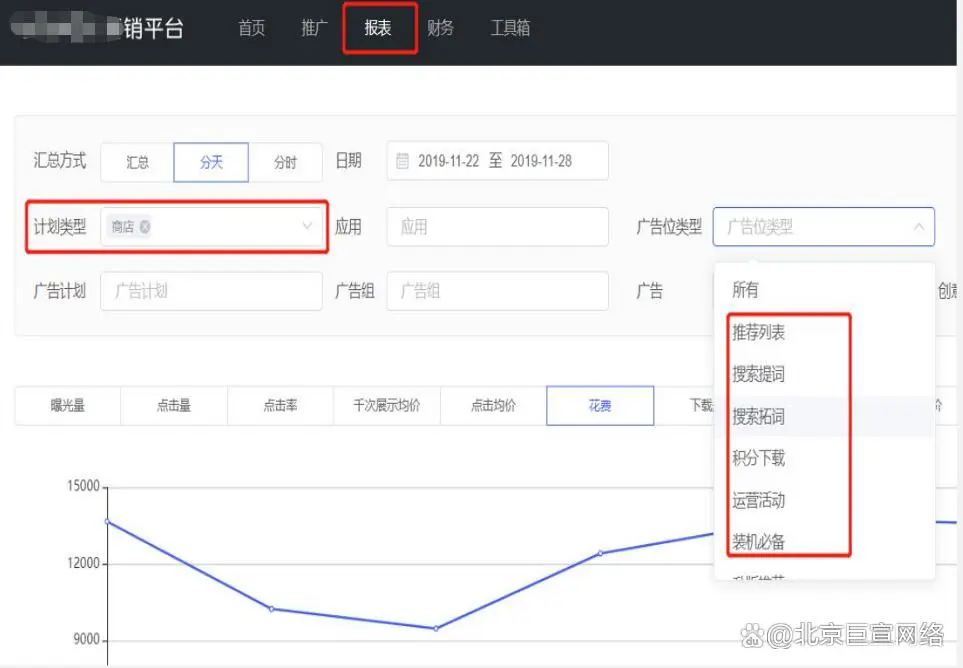 广告位类型:主要看“推荐列表”“搜索提词”“搜索拓词(注:拓词属于推荐列表投放的消耗,数据报告单独呈现)