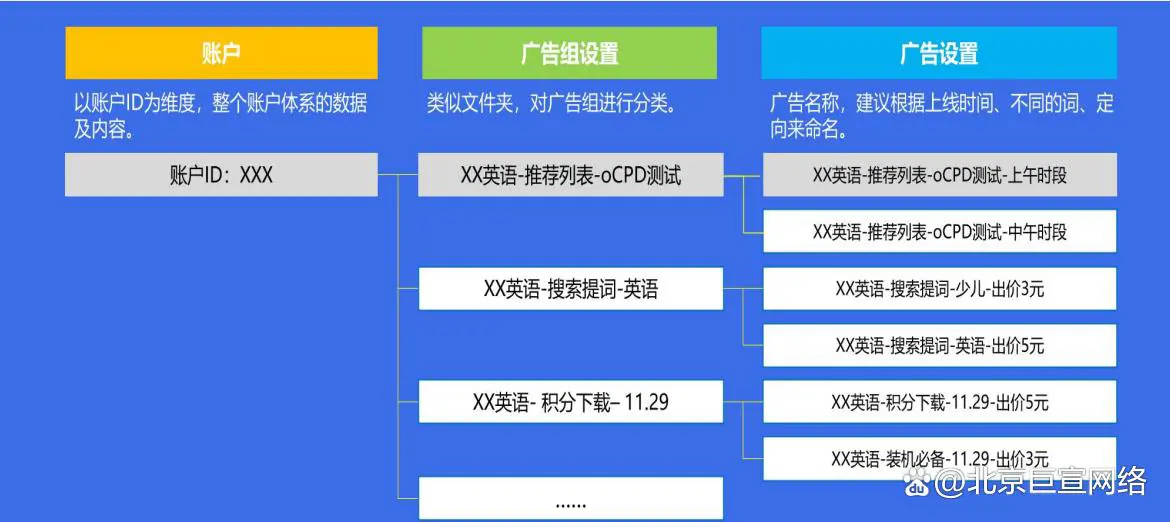 规范账户搭建的好处:方便账户管理;便于后期针对性按广告计划,做投放效果分析,提升投放效果