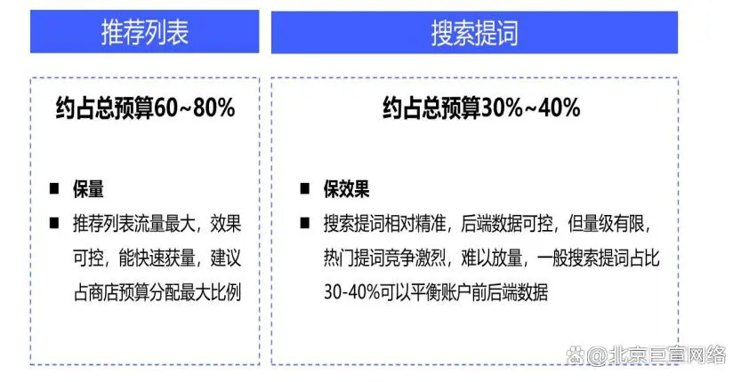 搜索拓词的依赖关系:推荐列表和搜索拓词捆绑售卖,客户无法控制两者比例,搜索拓词在后台的数据报表是独立的,客户可见