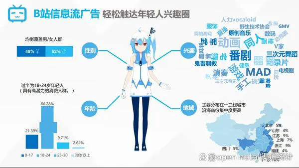 最主流的二次元社区,用户对新事物接受度和包容度较高,可以投放较为新鲜的素材。