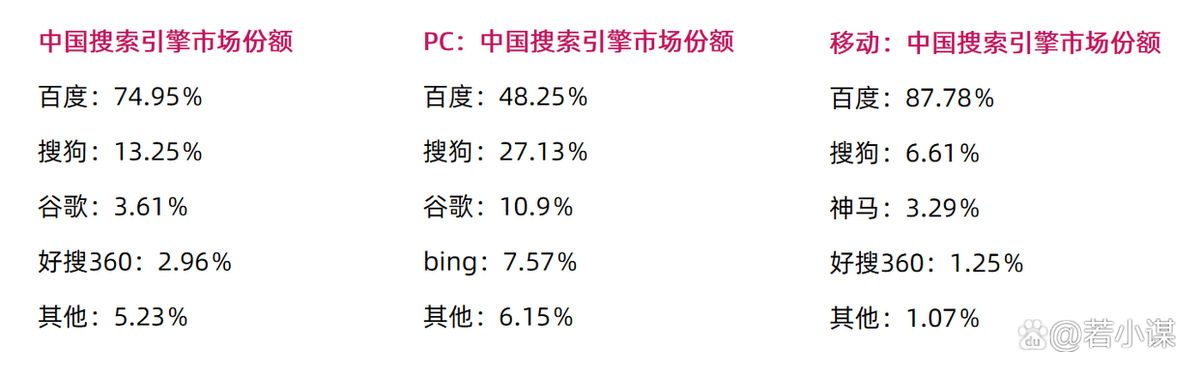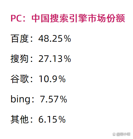 我们大多数情况下,都是做百度SEO,因为百度的搜索在中国,PC,移动都是占有率最高的,流量最大的平台。