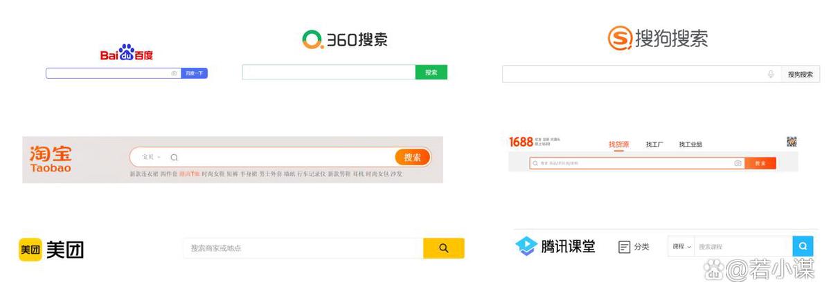 按功能分类:淘宝、1688,美团,大型网站,都会有一个搜索入口。
