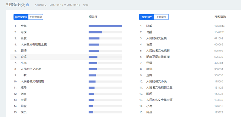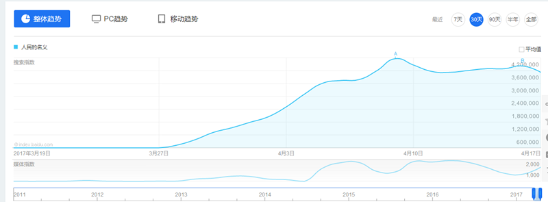 以时下火爆半边天的“人民的名义”为例,以下图片均来自“百度指数”。