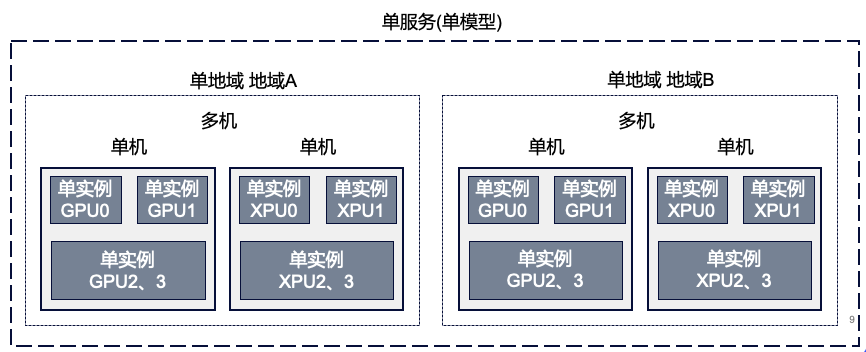 首先是均匀调度。下图为公司内部模型部署的一种典型方案,我们每个人拿到的计算机叫做单机,但是单机粒度较大需要进行虚拟化,切分出更小的粒度来提供服务、做扩缩容等,我们称作实例。