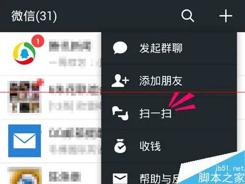 5、当选择使用微信之后,屏幕上显示一个二维码图案,然后在微信上使用[扫一扫]