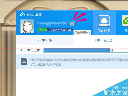 1、在电脑上已打开百度云管家的前提下,点击已登录帐号右边的VIP图标开通
