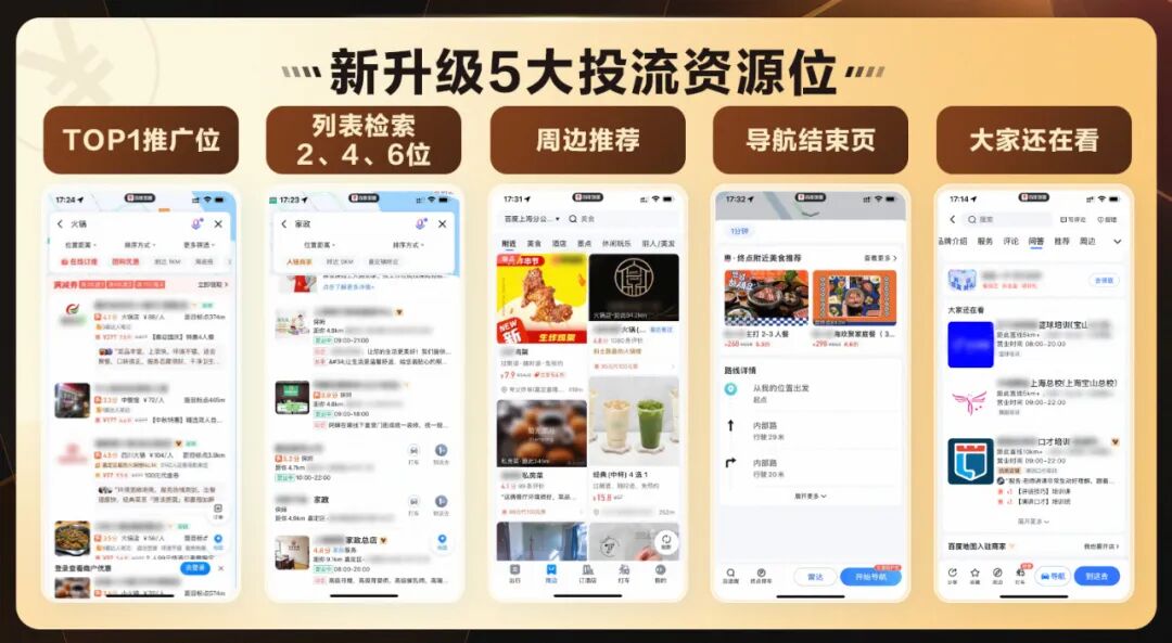 想要快速起量的商家,可以在开通百度地图会员的基础上,购买流量宝投流服务,流量宝可帮助商家占领TOP1推广位、检索列表第2、4、6、9位置排名、周边推荐、大家还在看、导航结束页五大专属流量位,实现高效营销获客。