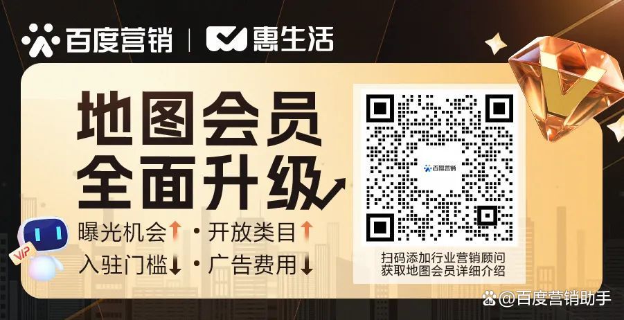如今,为助力中小企业成长,同时也让商家可以更加便捷、高效开展本地经营,百度地图会员迎来全面升级,带来更低入驻门槛、更大曝光机会、更多开放类目、更高转化效率,开启经营再进化!