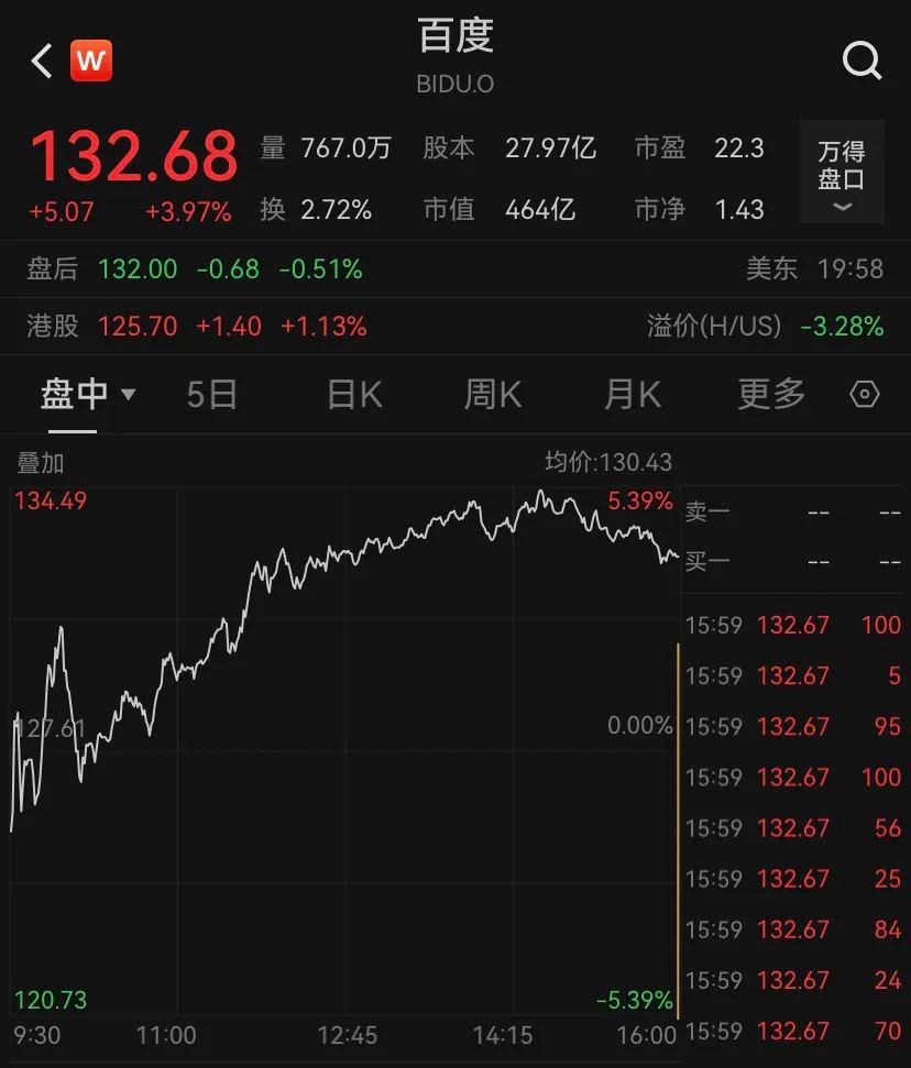 即便今年的宏观环境目前看还存在一定不确定性,但正是由于收入与利润均实现超预期增长,同时百度作为消费科技巨头,核心业务在AI加持下长期预期向好,叠加降本增效持续,百度未来业绩增长确定性高。受财报数据利好兑现,百度美股在财报发布当日收涨3.97%