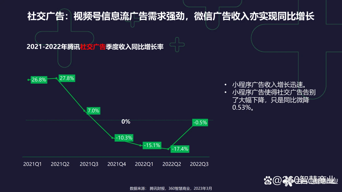 • 22年在线营销服务收入减少60亿,年度环比下降7%