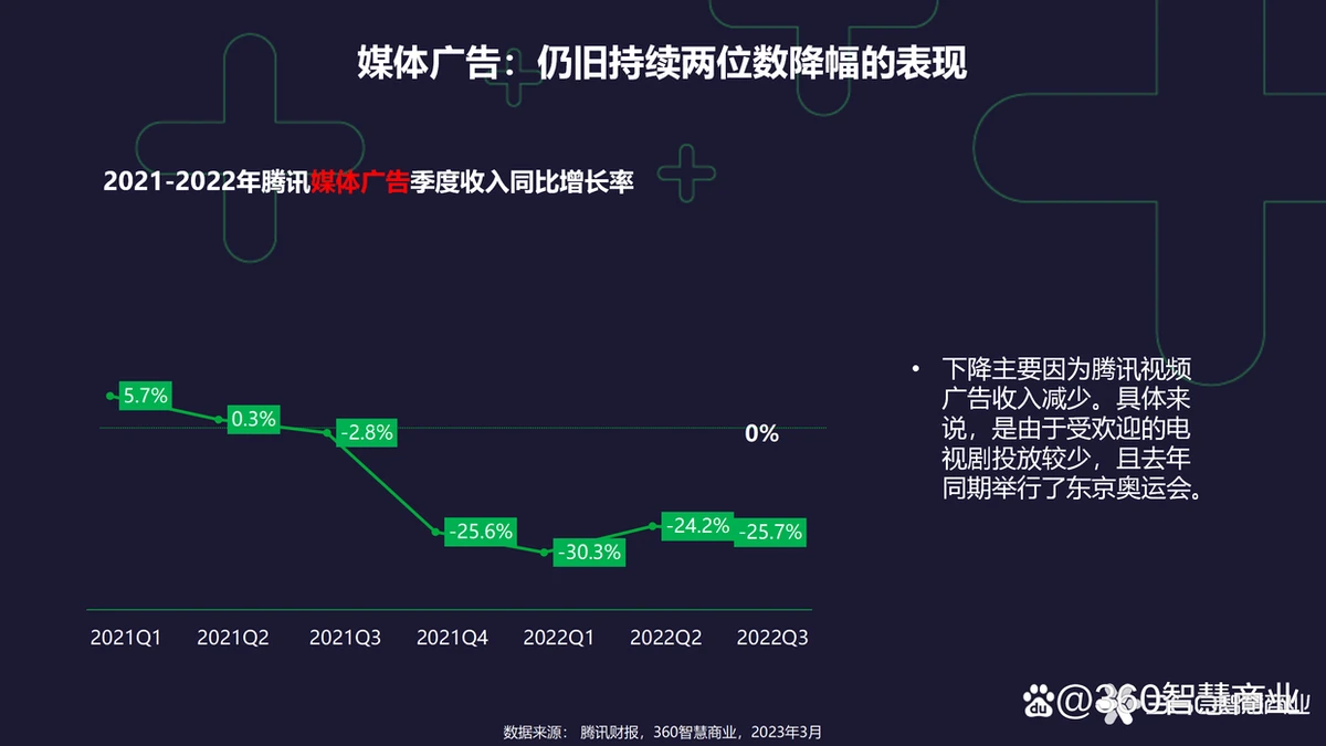 • 媒体广告:仍旧持续两位数降幅的表现