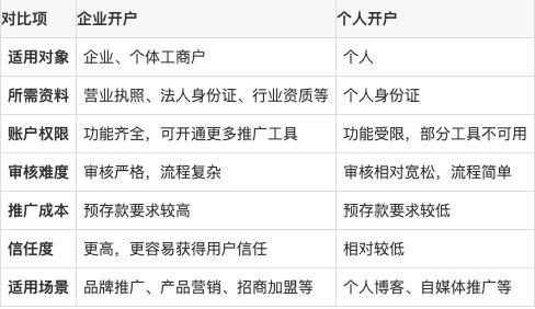 个人博客、自媒体推广: 个人开户可以满足基本的推广需求,且成本较低。