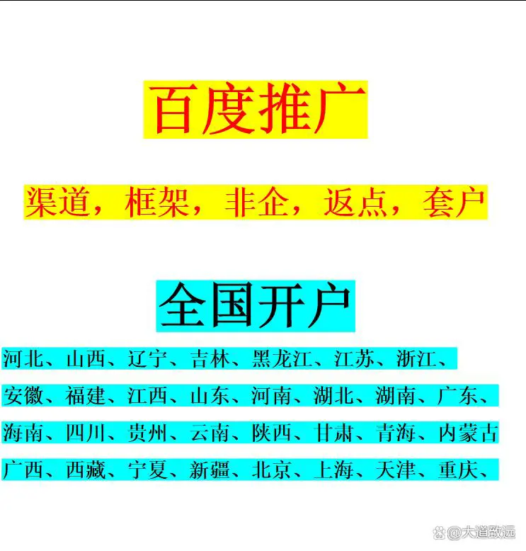 百度渠道非企框架返点开户。