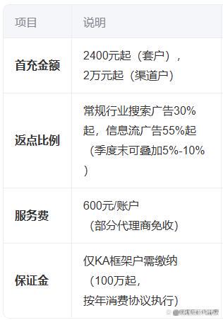 返点按月/季度结算,需满足最低消耗门槛(如月消耗≥5万元)
