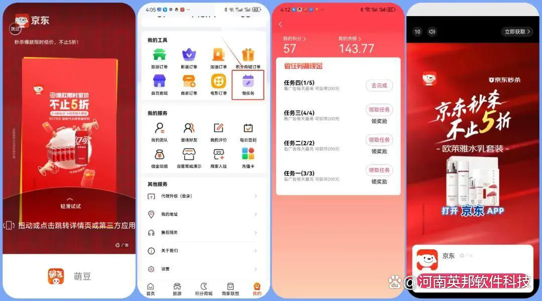 我们系统能够无缝集成第三方广告平台,对接:穿山甲、优量汇、快手、百度、华为等多家广告平台,为应用开发者和平台运营者开辟了新的盈利渠道与用户互动模式,支持多样化的广告形式,如开屏广告与激励视频广告。以开屏广告为例,当用户启动应用时,会在初始界面展示一个时长约四秒钟的广告。这不仅意味着用户在打开APP的第一刻,平台便开始产生经济效益,而且这种即时曝光策略极大提高了广告的可见性和影响力。