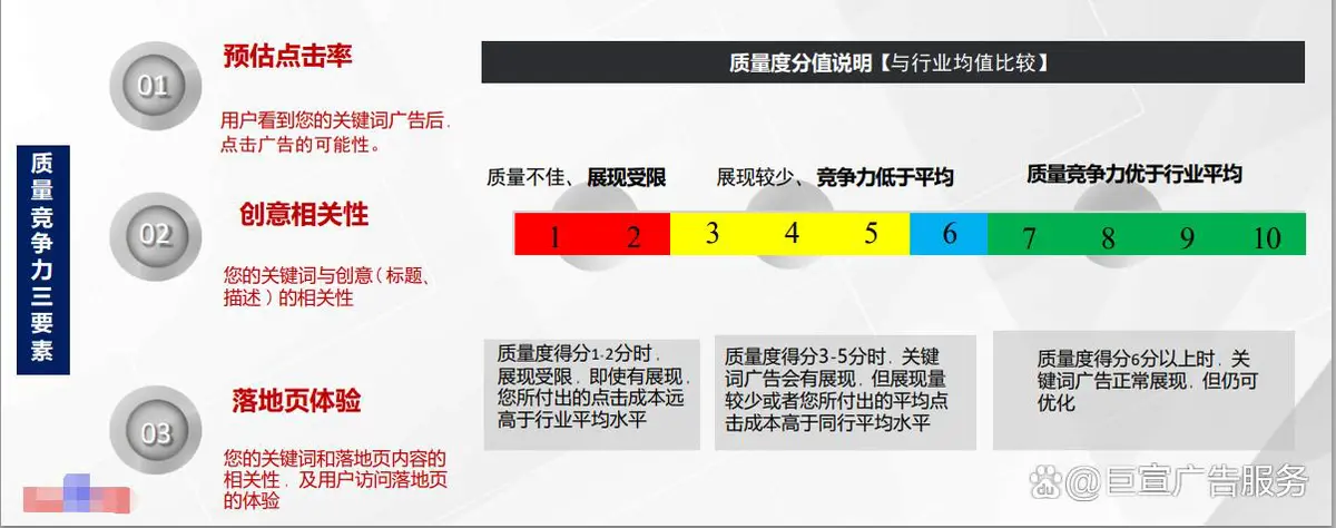 广告质量是竞价系统中对关键词、创意、落地页等多个维度的评判 , 广告质量较高的广告能够以较低的价格获得较为理想的广告排名。