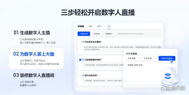 首先,只需要三步操作就可开启24小时不打烊的数字人直播,在很多人心中形成“原来直播也可以这么简单” 的心智。