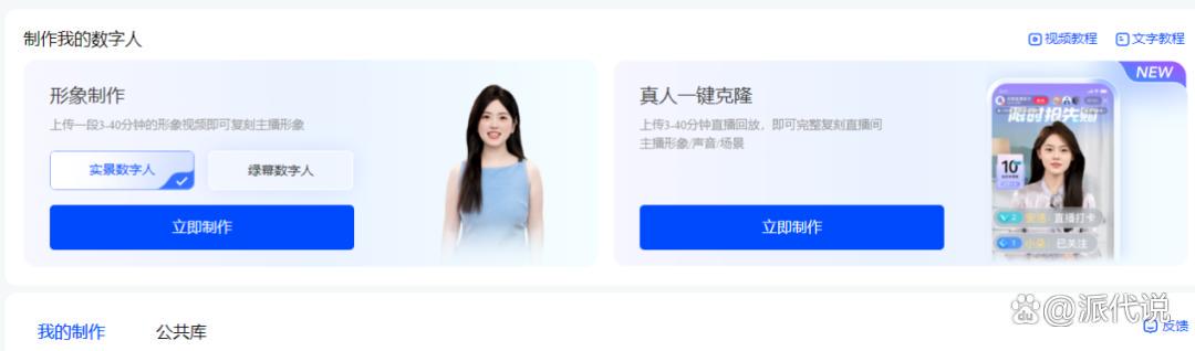 在得知百度慧播星「真人一键克隆」新功能上线后,派代也作为第一批“吃螃蟹”的用户,按照登陆慧播星官网->数字人->真人一键克隆->立即制作的路径,率先体验了该功能。