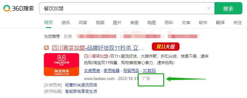 因为竞价广告并非只出现在百度搜索,各大搜索引擎都有,比如↓。