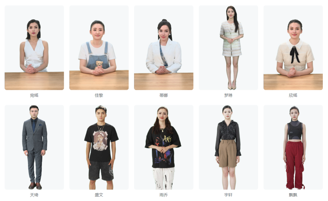 对于无直播能力的新商家来说,我们可以在下侧的公共库中选择数字人形象。对于有直播能力的商家来说,可以真人录制形象,构建1:1复刻的数字人主播。