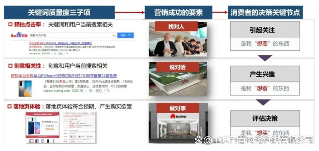 它受到3个因素的影响:预估点击率、创意相关性、落地页体验