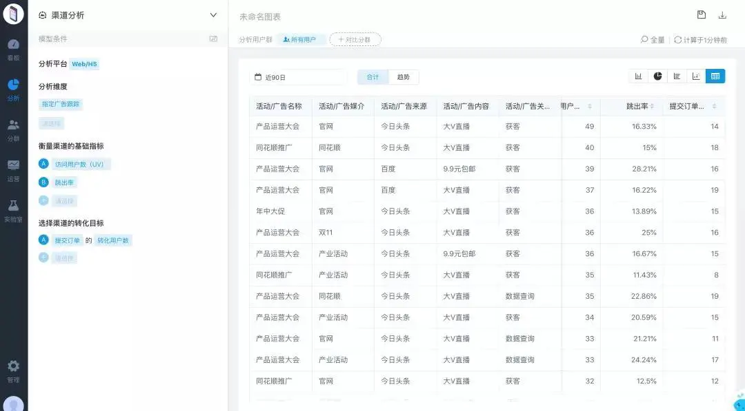 易观方舟针对不同广告投放方式尽心效果跟踪