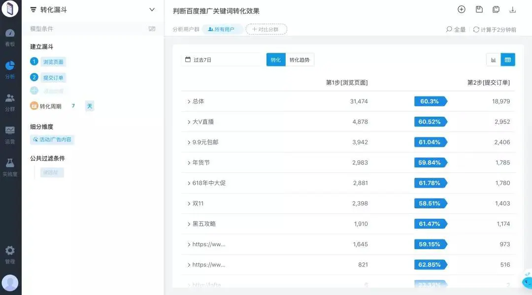 单独给百度推广设置着陆页,比如叫双11活动的页面,在页面里的每个交互都埋点,并且单独设置CTA按钮和表单,这样就形成一个专门为百度推广计划和单元设置的行为分析模型。