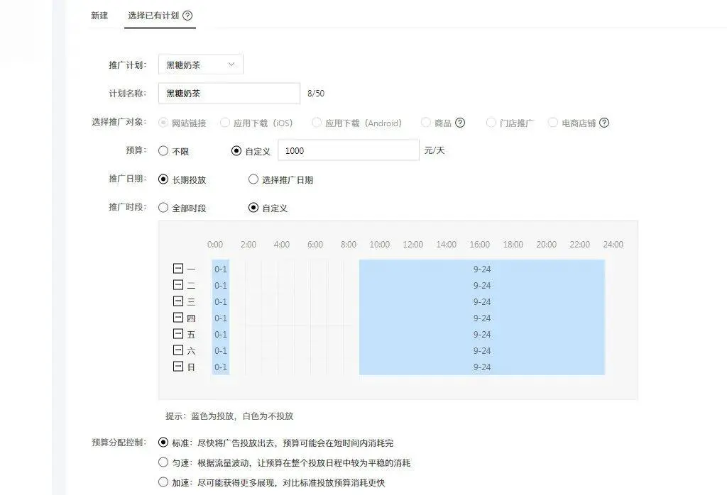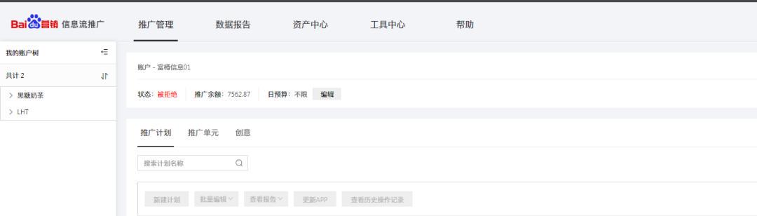 首先打开信息流账户与搜索不同的是,信息流广告账户只有推广计划、推广单元、推广创意。而搜索引擎是以关键词优化为主,信息流是以创意物料优化为主。首先是计划层级:计划层级主要可以设置我们账户计划预算,投放日期,投放时段以及投放方式,这里计划投放建议以产品,或者受众目标去区分。例如:招商加盟,招商加盟计划分为几种产品,比如饮品,烘焙,小吃等,这里可以以产品建立一个推广计划。