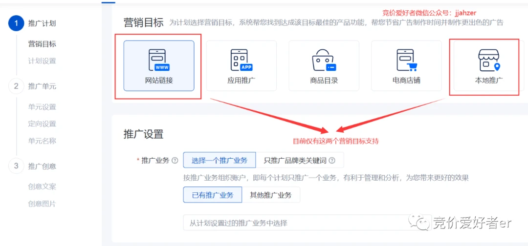 PS:目前仅“网站链接”和“本地推广”计划支持设置出价方式。