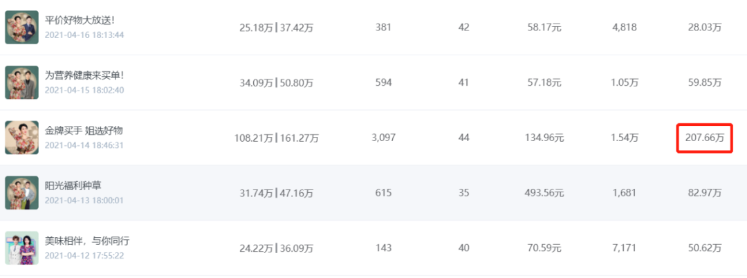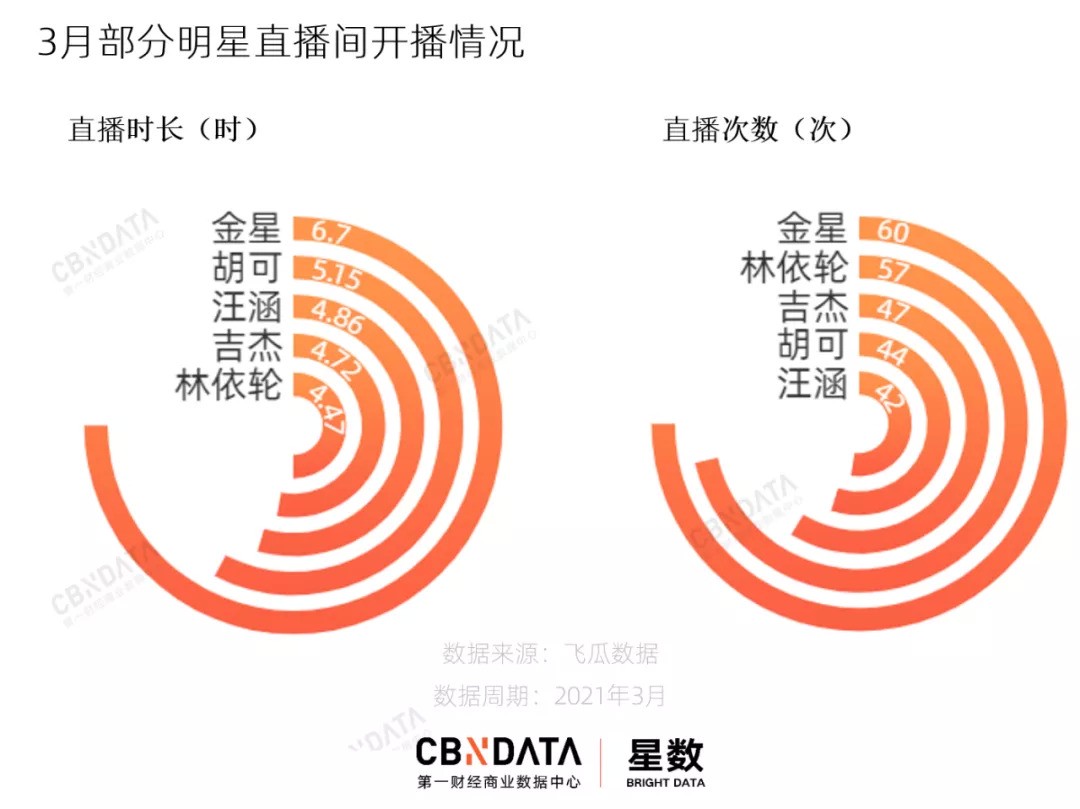 平台方面,贾乃亮以平均每月一次的频率出现在苏宁易购直播间;淘宝继谢娜、景甜相继暂停直播带货后,刘涛的直播频次也明显减少,近3个月以来,刘涛共直播5次,但其带货实力依然可观,其中3月份的一场直播带货金额超5亿。
