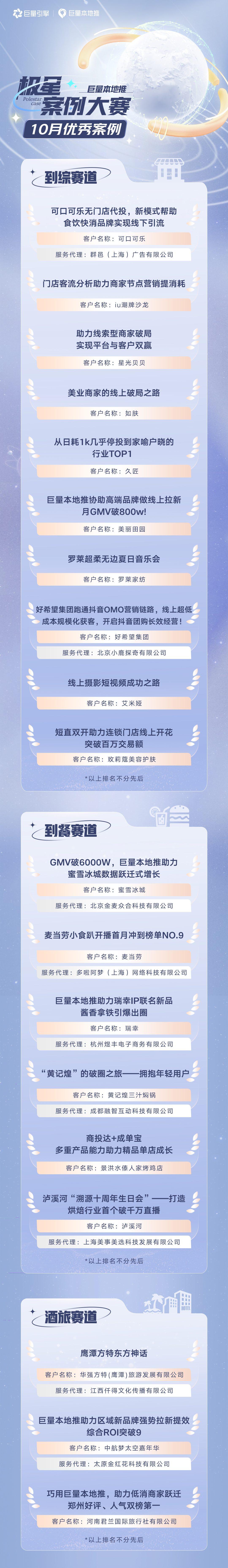 今天,小推为大家带来了「极星案例大赛」10月优秀案例榜单,本次共有19家优秀案例成功登榜。即日起,小推还将陆续为大家带来更详细的案例分享,请持续关注。