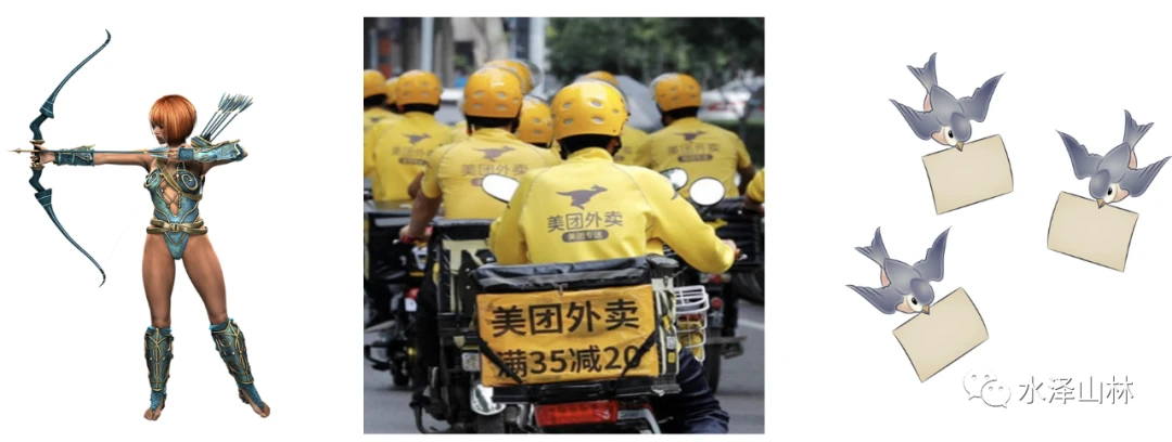 一个关键点:不管是射箭的妹子,还是骑手小哥,还是传书飞鸽,他们的起点/出发点都是物品侧。